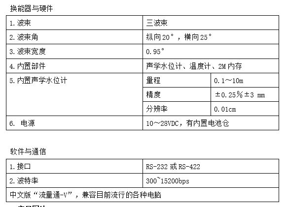 该仪器采用座底式(垂直)安装,可应用于极浅水深的流量测验,如:人工沟渠、满管和非满管的管道或箱涵。配套的中文版“流量通-V”测流软件,用户界面友好,使用方便,可通过“指标流速法”或“数值模型法”计算流量,计算结果可输出到串行口或软件,可与遥测设备组合形成流量在线遥测系统。